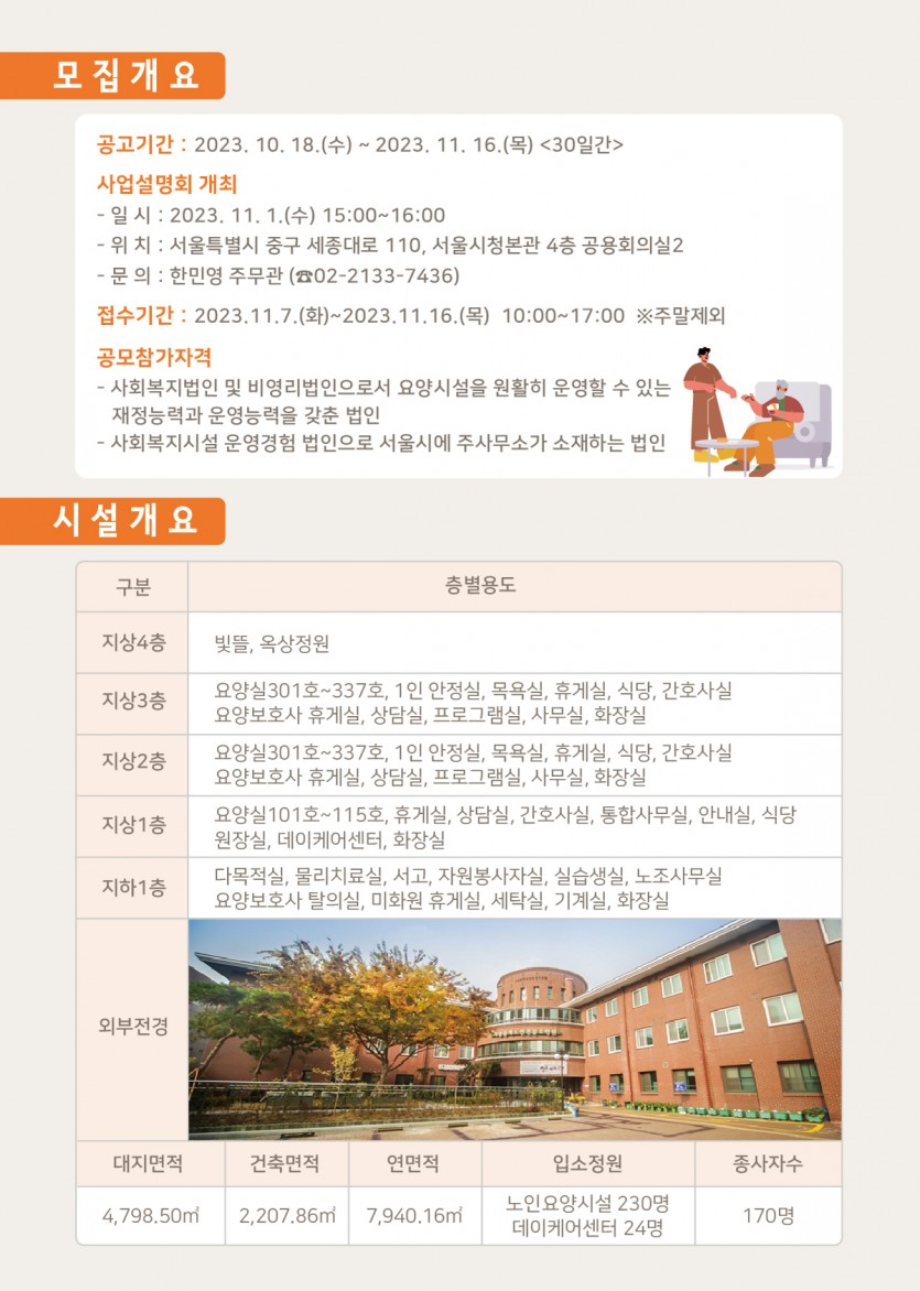 <서울특별시> 시립중계노인전문요양원 민간위탁 운영체 모집 안내