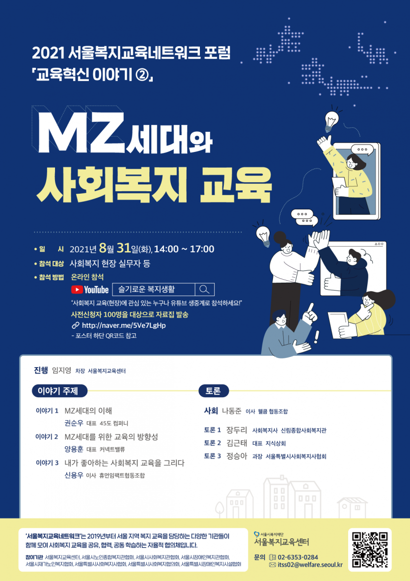 - 이전글〔서울시복지재단 서울복지교육센터 〕 2021년 서울복지교육센터 복지마이너스 스쿨 과정 '사회복지 여성리더, 유니버셜 디자이너가 되다 21.09.01