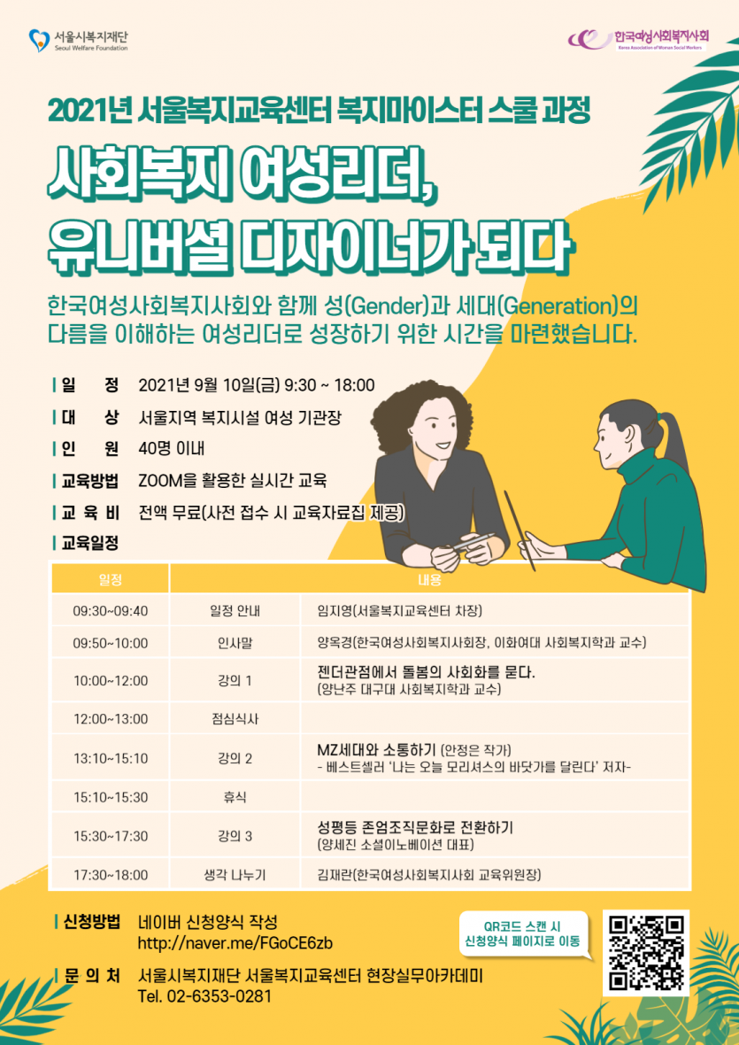 〔서울시복지재단 서울복지교육센터 〕 2021년 서울복지교육센터 복지마이너스 스쿨 과정 '사회복지 여성리더, 유니버셜 디자이너가…
