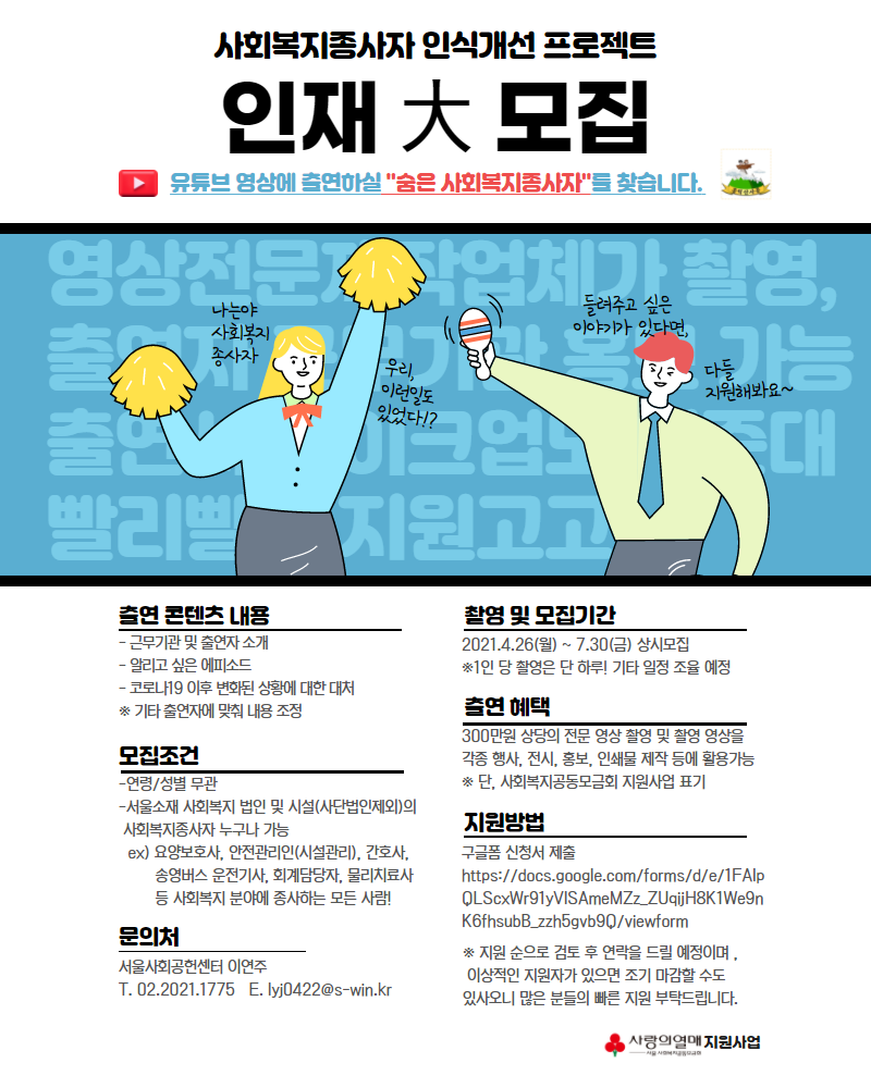 사회복지종사자 인식개선 프로젝트 인재大모집