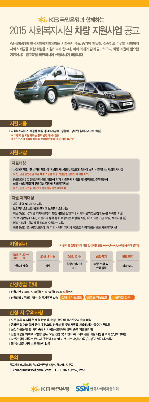 [한국사회복지협의회]KB국민은행과 함께하는 2015 사회복지시설 차량지원사업 공고