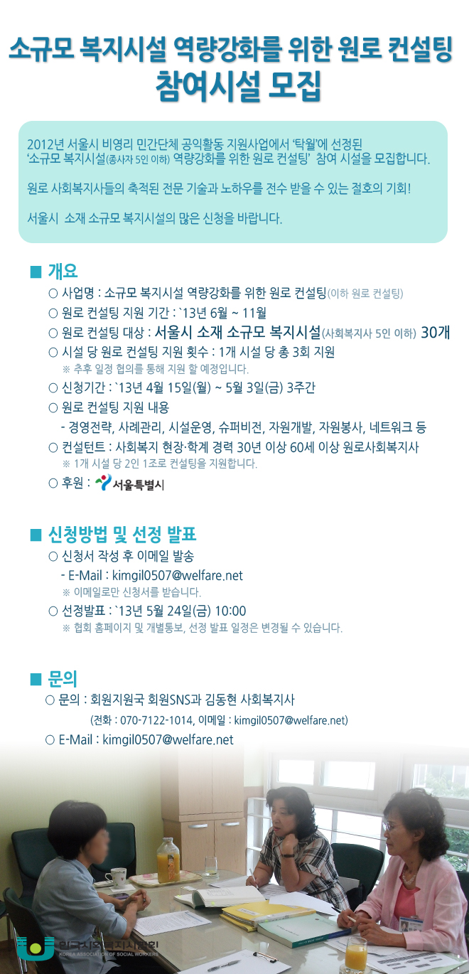 [한국사회복지사협회]-소규모 복지시설 역량강화를 위한 원로 컨설팅 참여시설 모집