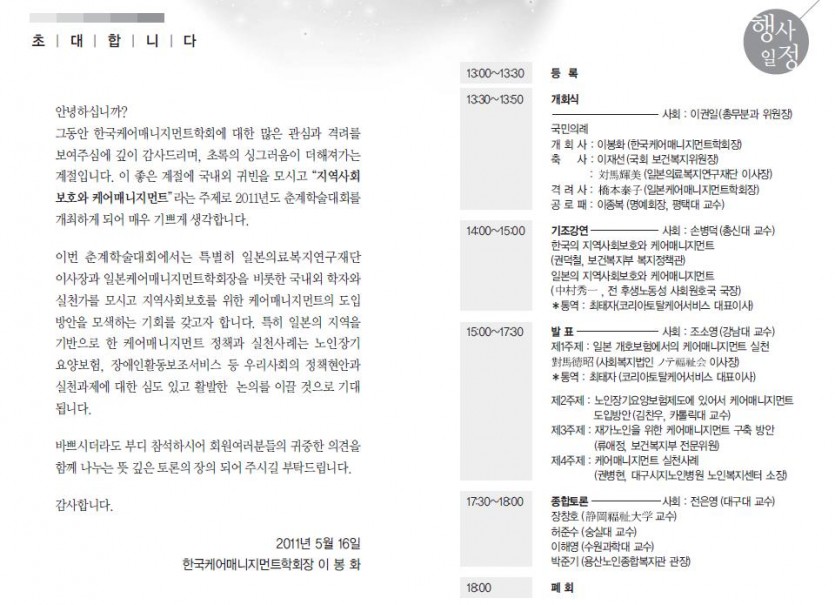 2011년 한국케어매니지먼트학회 춘계학술대회