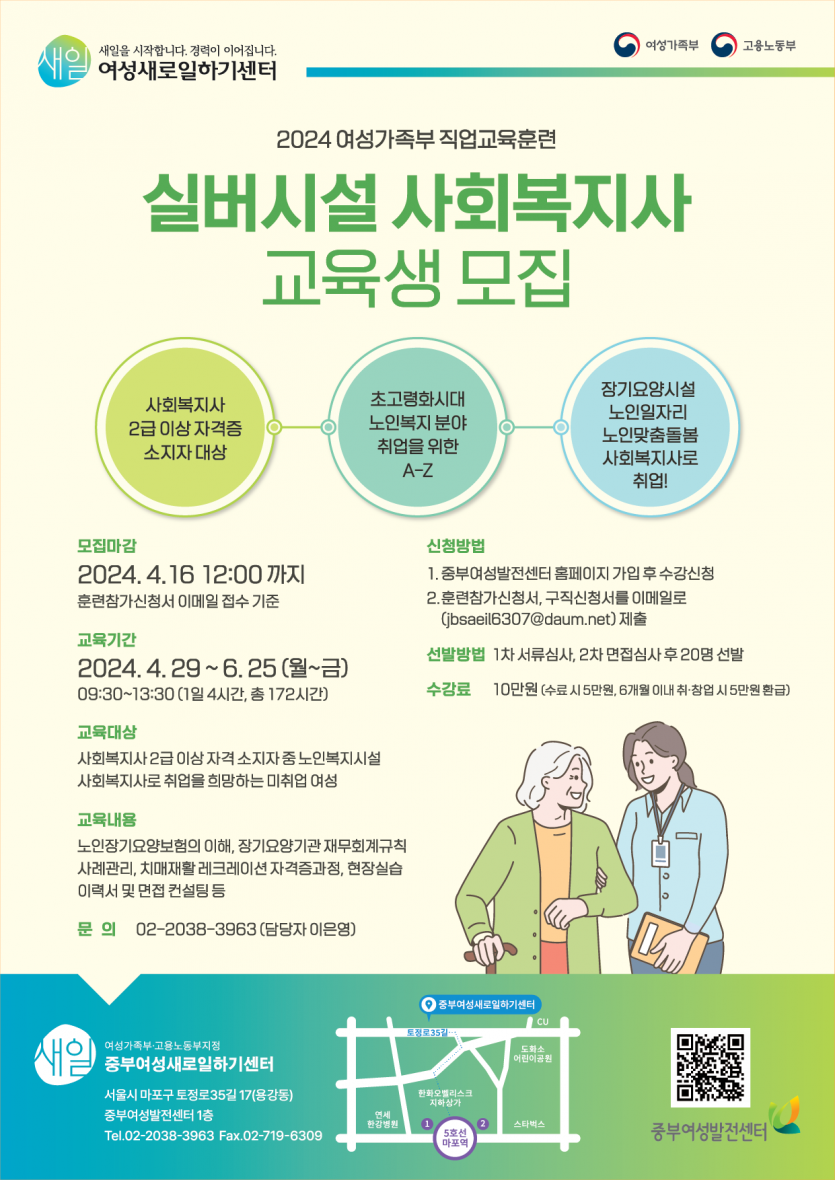 <중부여성새로일하기센터> 실버시설 사회복지사 교육생 모집