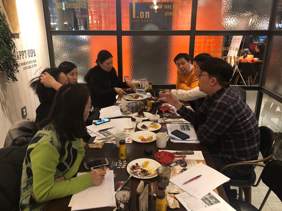 *일시 : 2018년 12월 18일(화) 17:00~20:00<BR>*장소 : 빕스 공덕점<BR>*참석인원 : 8명<BR>*내용<BR> - 2018년 직무교육 결과보고<BR> - 2019년 직무교육 진행방법 논의<BR> - 2019년 운영매뉴얼 개발 업무분장