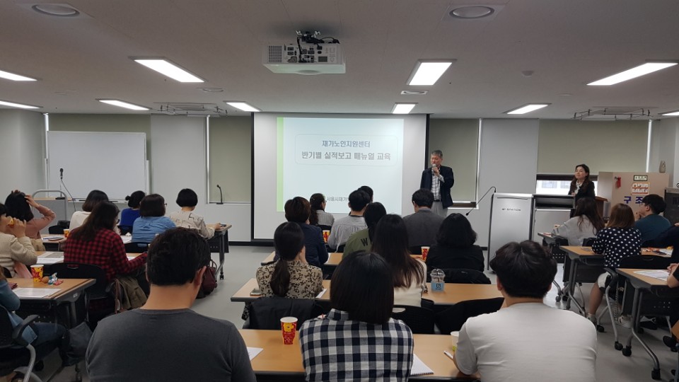 *일시 : 2018년 4월 3일(화) 14:00~16:00<BR>*장소 : 서울시사회복지사협회 교육장<BR>*참석자 : 54명<BR>*내용 : 재가노인지원센터 반기별 실적보고 매뉴얼
