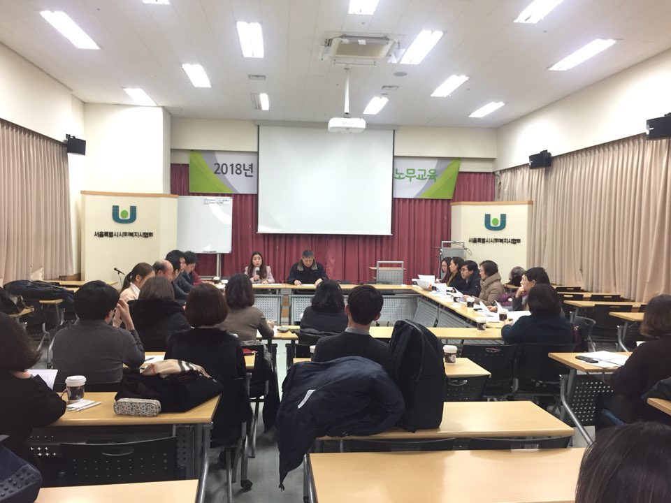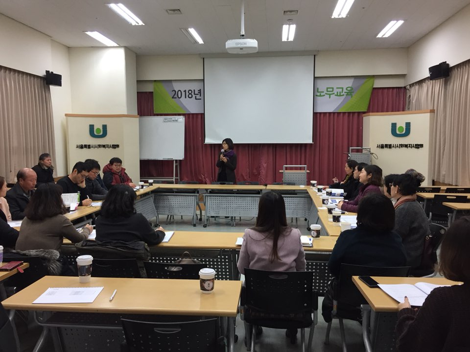*일시 : 2018년 2월 6일(화) 16:00-18:00<BR>*장소 : 서울시사회복지사협회 교육장<BR>*참석인원 : 29명<BR>*내용<BR> - 2018년 사회복지시설 종사자 처우개선 계획 안내<BR> - 노인사회활동지원사업 전담인력 인사<BR> - 서울시 어르신복지과 어르신돌봄팀 팀장 인사<BR> - 부회장 변경 안내<BR> - 재가노인지원센터 반기별 보고 양식 작성 안내<BR> - 기타