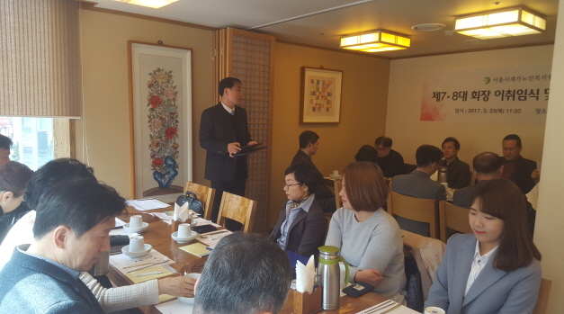 *일시 : 2017년 3월 23일(목) 11:00-13:00<BR>*장소 : 색동저고리<BR>*참석자 : 20명<BR>*내용<BR> - 제7,8대 회장 이취임식 및 임원 임명식<BR> - 공지사항 전달