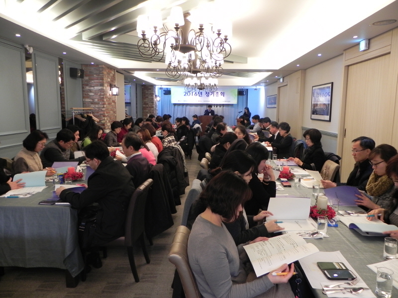 *일시 : 2016년 2월 16일(화) 11:00-12:00<BR>*장소 : SMORGAS<BR>*참석인원 : 125명(참석회원 90명, 총회위임 35명)<BR>*안건<BR> 1) 2015년 사업실적 및 결산서 심의, 의결<BR> 2) 2016년 사업계획 및 예산(안) 심의, 의결<BR> 3) 감사 선출