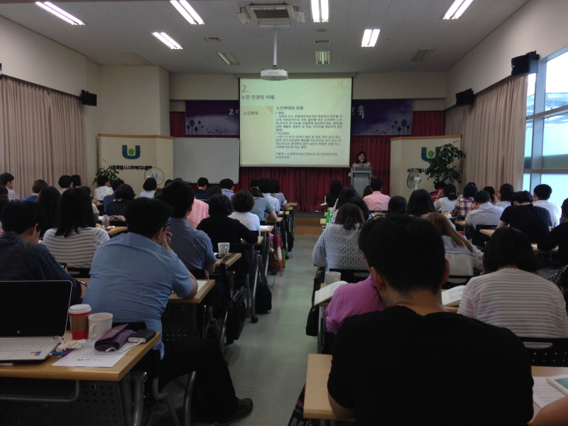 *일시 : 2015년 7월 9일(목) 09:00~18:00 <BR>*장소 : 서울시사회복지사협회 교육장 <BR>*참석인원 : 77명 <BR>*내용 <BR>- 데이케어센터 운영 및 프로그램 서식 작성법(공릉데이케어센터 장현준 사무국장) <BR>- 데이케어센터 노인인권보호&개인정보보호(법무부 임규선 변호사) - 데이케어센터 회계실무(시흥4동성당데이케어센터 차지숙 센터장) *기타 : 서울시사회복지사협회와 서울시재가노인복지협회 연계과정으로 진행