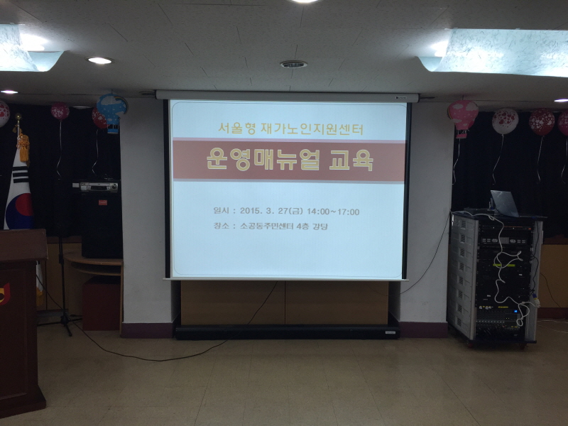 * 일시 : 2015년 3월 27일(금) 14:00~17:00<BR>* 장소 : 소공동주민센터 4층 강당<BR>* 참석인원 : 38명<BR>* 내용 : 서울형 재가노인지원센터 운영매뉴얼 교육