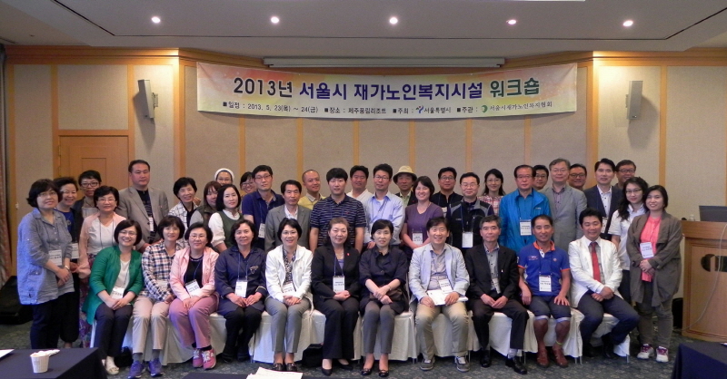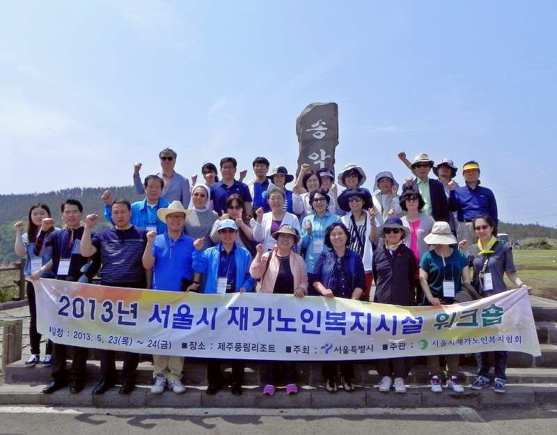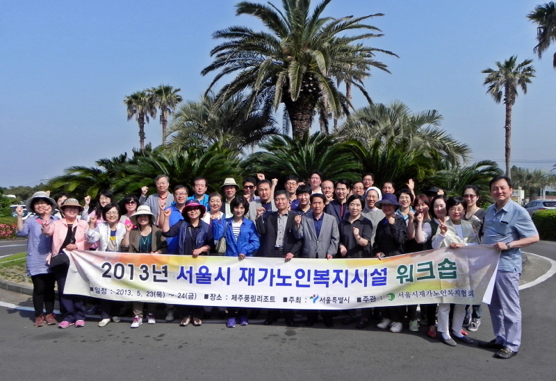 일시 : 2013년 5월 23일(목)~24(금) 1박 2일<BR>장소 : 제주 풍림리조트<BR>대상 : 서울형 데이케어센터, 서울형 재가노인지원센터 시설장 37명<BR>주최 : 서울특별시<BR>주관 : 서울시재가노인복지협회<BR>세부일정<BR> - 개회식<BR> - 2013 서울시 어르신 복지행정 <BR> (김정숙 팀장 / 서울특별시 어르신복지과 재가복지팀)<BR> - 감동복지를 위한 창조적 커뮤니케이션<BR> (박이철 소장 / 주식회사 길(한국감동력연구소))<BR> - 재가노인복지시설 운영 활성화를 위한 자유토론<BR> (데이케어센터/재가노인지원센터)