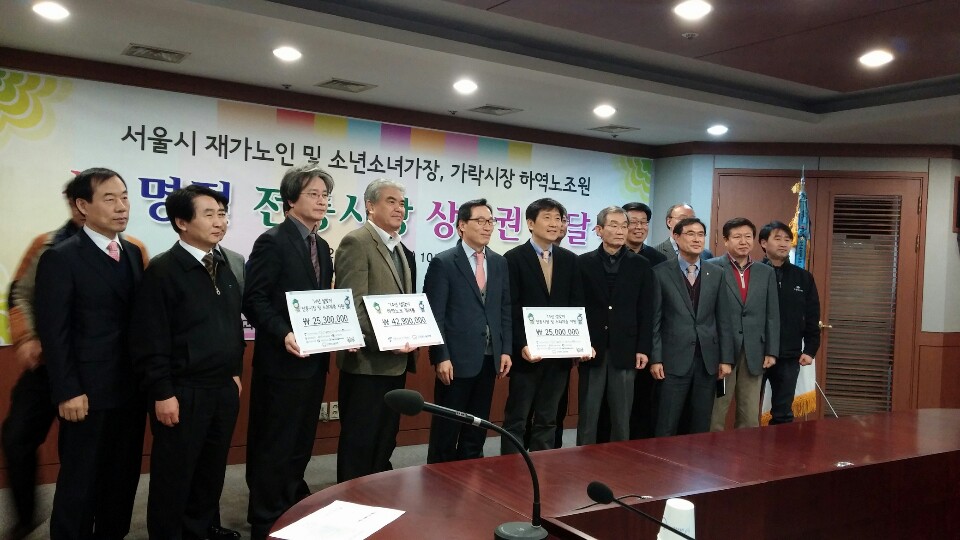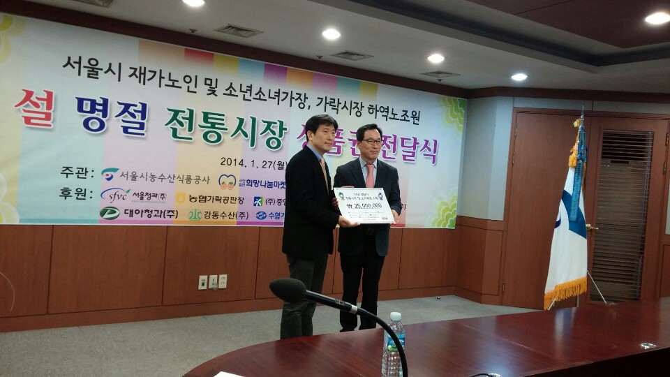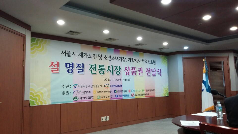 일시 : 2014. 1. 27(월) 10:30~11:00<BR>장소 : 서울농수산식품공사 5층 대회의실<BR>내용 : 전통시장 상품권 전달식(25,000,000원)
