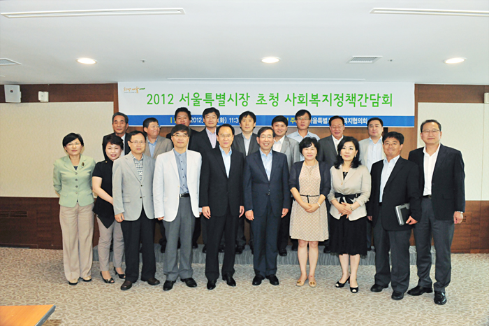 일시 : 2012. 7. 17(화) 11:00~13:00<BR>장소 : 서울특별시청 간담회장<BR>내용 : 직능별 사회복지현안 및 정책건의, 오찬