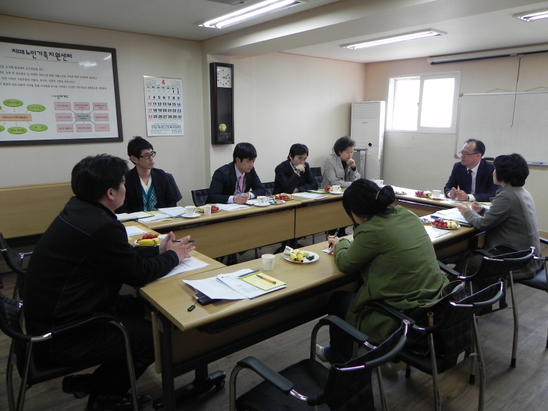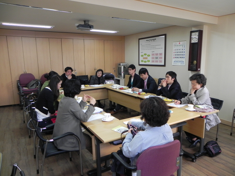 일시 : 2011. 4. 19(화) 15:00~17:00<BR>장소 : 구립 마포노인복지센터<BR>참석인원 : 총 12명(회장, 부회장2명, 재가노인지원센터 시설장 및 실무자 8명, 과장)<BR>내용<BR> 1. 협회장 인사<BR> 2. 참석자 소개<BR> 3. 서울시재가노인복지협회 소개<BR> 4. 2011년 협회 사업 안내<BR> 5. 자유토론 및 멘토링<BR> 6. 폐회