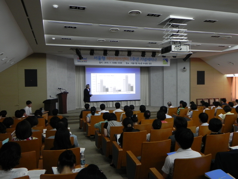 일시 : 2010. 7. 13(화) 14:00~17:00<BR>장소 : 서울시청 서소문 후생동 4층 강당<BR>주제 : 서울형 데이케어센터 운영성과 및 발전방안