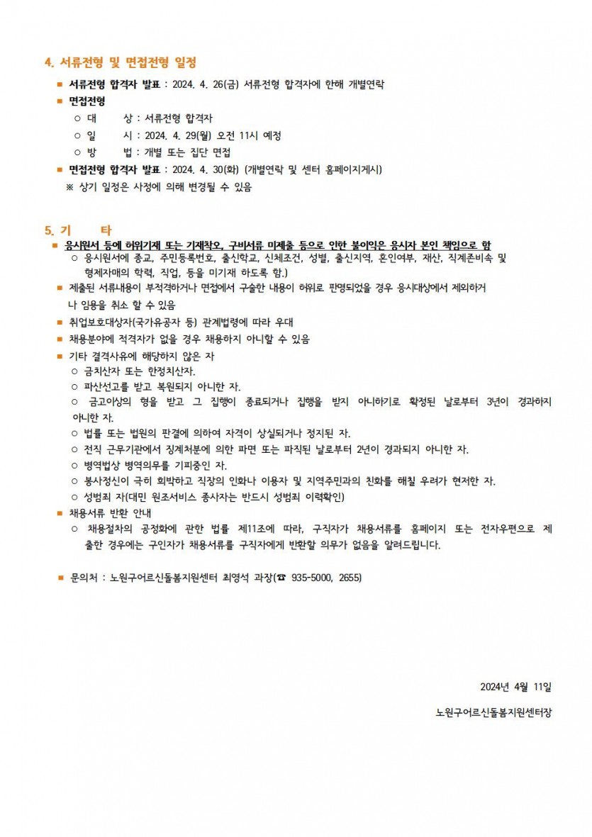 2024년 제5회 노원구어르신돌봄지원센터 채용공고(팀장선임전담사회복지사)