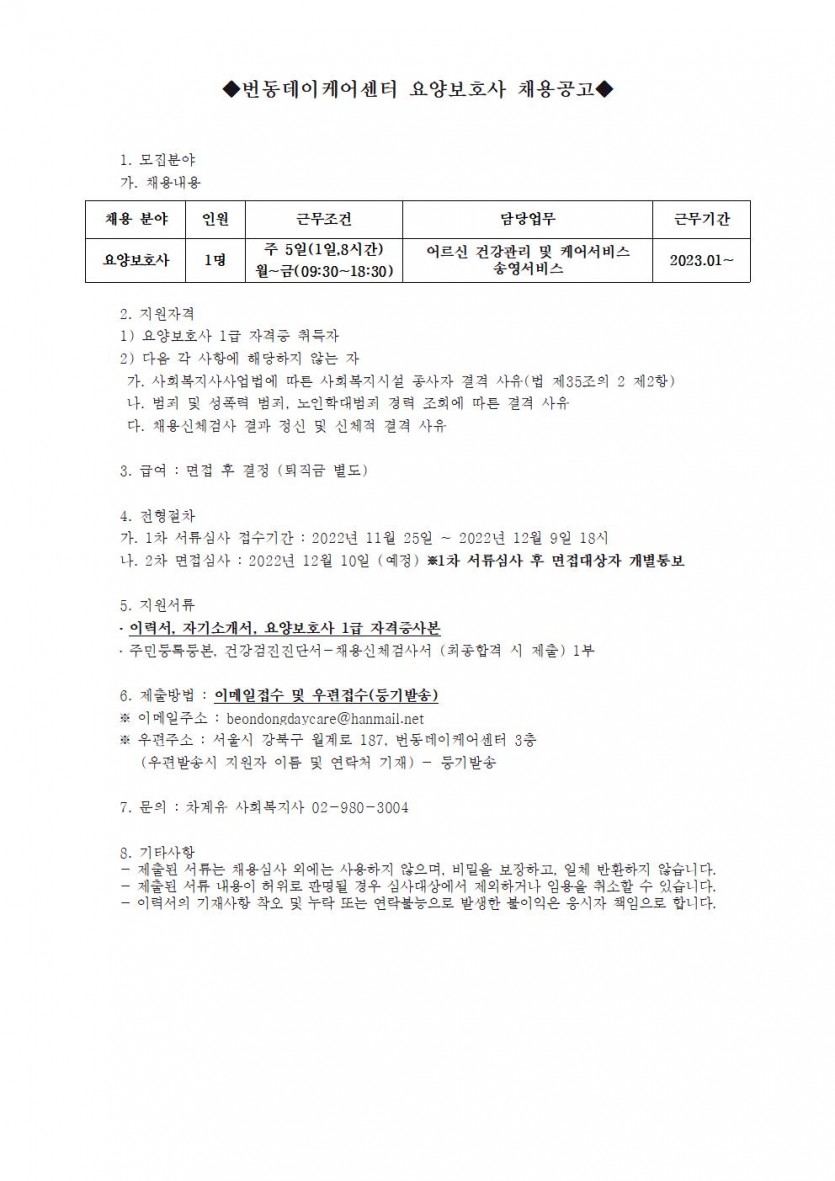 - 다음글노인맞춤돌봄서비스 전담사회복지사 채용공고 22.11.10