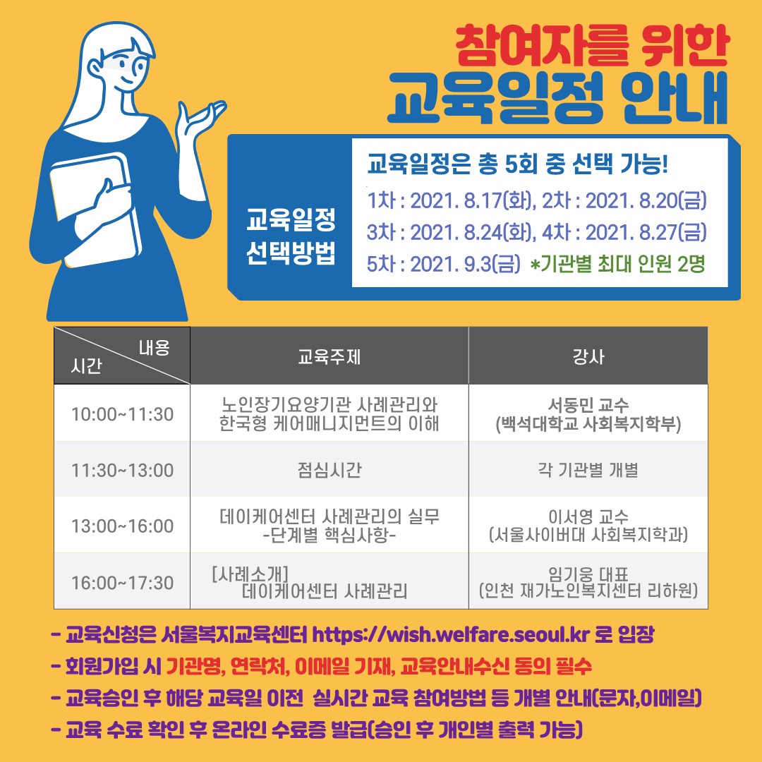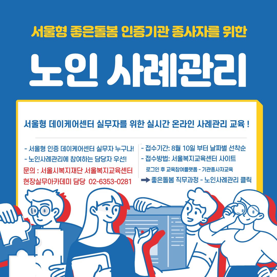 서울형 데이케어센터 실무자를 위한 실시간 온라인 사례관리 교육 안내드립니다.
